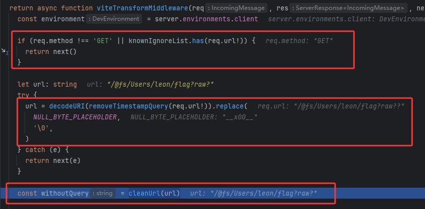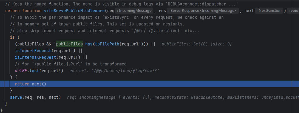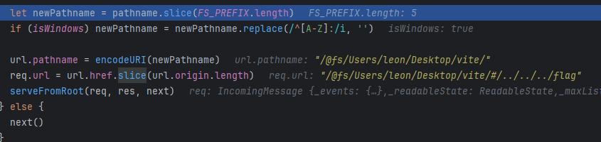 这看起来就比较难利用了,我们继续看/@fs/情况下的next()