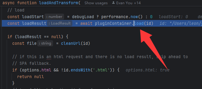 遍历plugins,挨个尝试用相应handler去call取得的id(文件路径及参数),最后通过vite:asset获取成功
