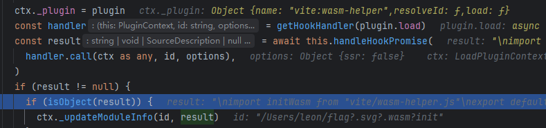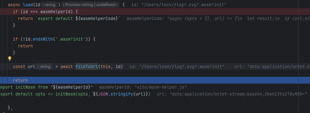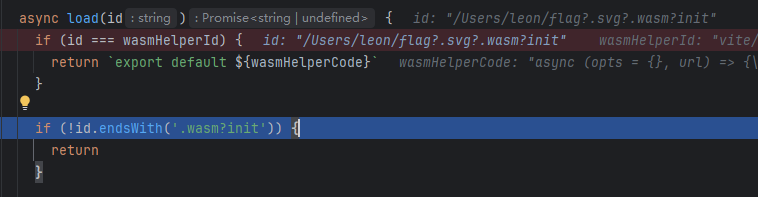 这里的?.svg?.wasm?init末尾没有引号,不会被urlWithoutTrailingQuerySeparators影响,而transformRequest也能正常解析,被wasm-helper解析成功了