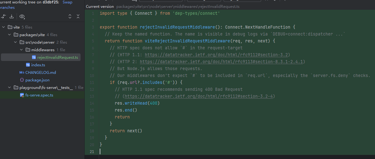 如果是在Node或Bun运行Vite环境下,当收到包含#的请求时,这些运行时内部不会拒绝该请求,而是将其传递到用户代码层面。在这种情况下,http.IncomingMessage.url的值会包含#字符。而Vite在检查server.fs.deny时,假定req.url不会包含#字符,这就导致了包含#的这类请求能够绕过server.fs.deny的检查。