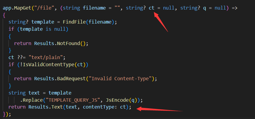 这是一个c#web,实现了一个希腊语到拉丁语的音译器,问题出在处理静态文件时(实际上是硬编码在变量中的)contentType可以被用户控制。