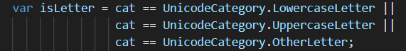 if (CharUnicodeInfo.GetUnicodeCategory(c) != UnicodeCategory.OtherLetter)