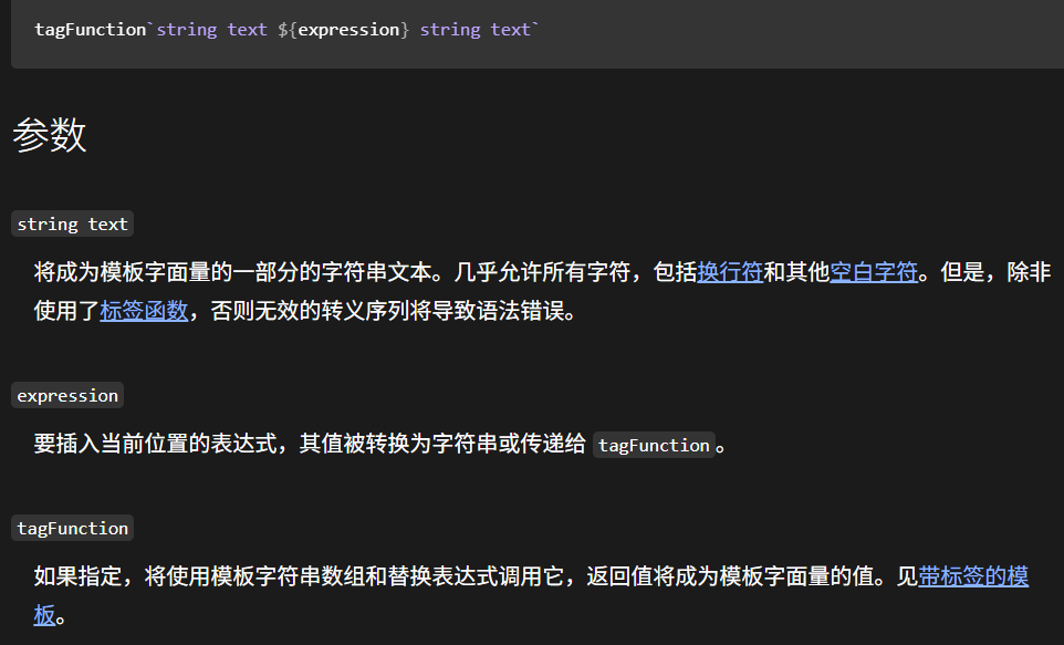 https://developer.mozilla.org/zh-CN/docs/Web/JavaScript/Reference/Template_literals