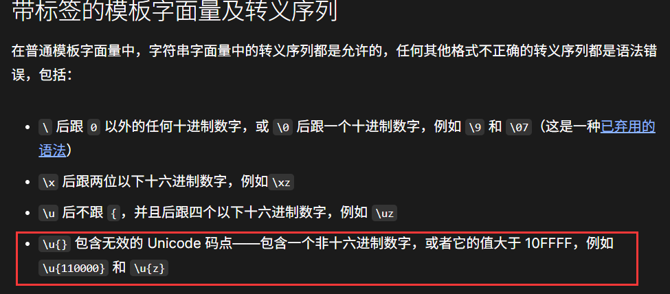 而且它支持在``中使用unicode转义序列